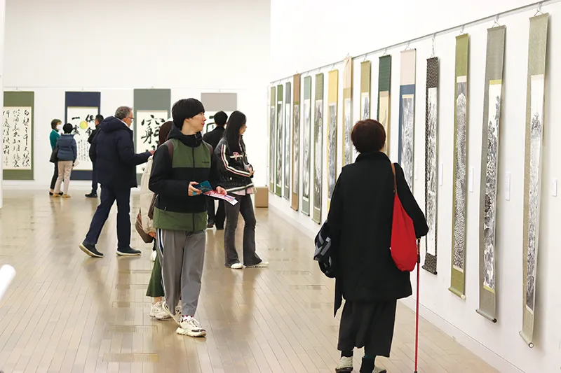 記念すべき第30回となる雪舟国際美術協会展は、1日の来場者が2000人を超えるもあり、その総数は1万人を超えました。そのうちのおよそ1/4を占めたのは外国人来場者。それは、書画芸術の美意識に世界が共感していることの証と言ってもよいかもしれません。