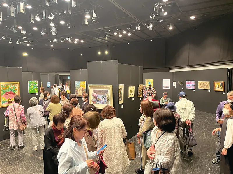 オアシスでは毎年、絵画・書・写真・立体・工芸などの幅広いジャンルの作品が一堂に会します。今年は日本から総勢141名・165点の作品が集結し、海外からも18名の作家が出展しました。