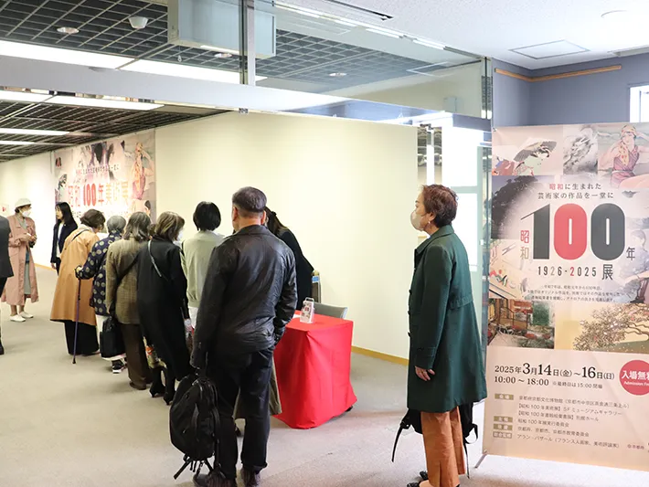 本展は、昭和生まれの作家に限定した「昭和100年美術展」の出展作を絵葉書として展示する「昭和100年書翰絵葉書展」との二本立てで構成されました。京都という土地柄もあってか、会場には海外からの来場者の姿も多く見られました。