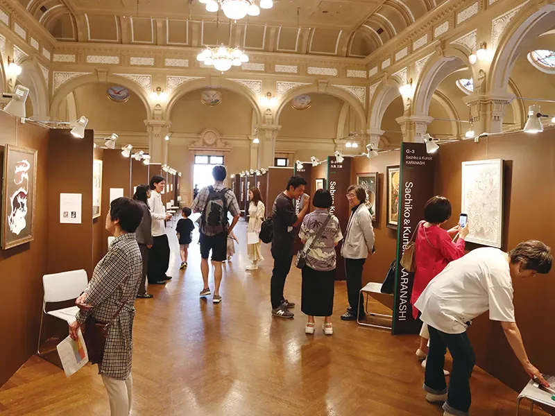 絵画、書、写真、立体、工芸など幅広いジャンルの作品が一堂に会するOASIS。普段は非公開であるクラシカルな会場に、今年は日本人113名224点の作品が集いました。加えて、スペイン、フランス、モナコなど海外の作家19名の作品も出展され、そのうちスペインとモナコから2名のアーティストが来日。来場者との交流を楽しむアーティストたちの姿が印象的でした。