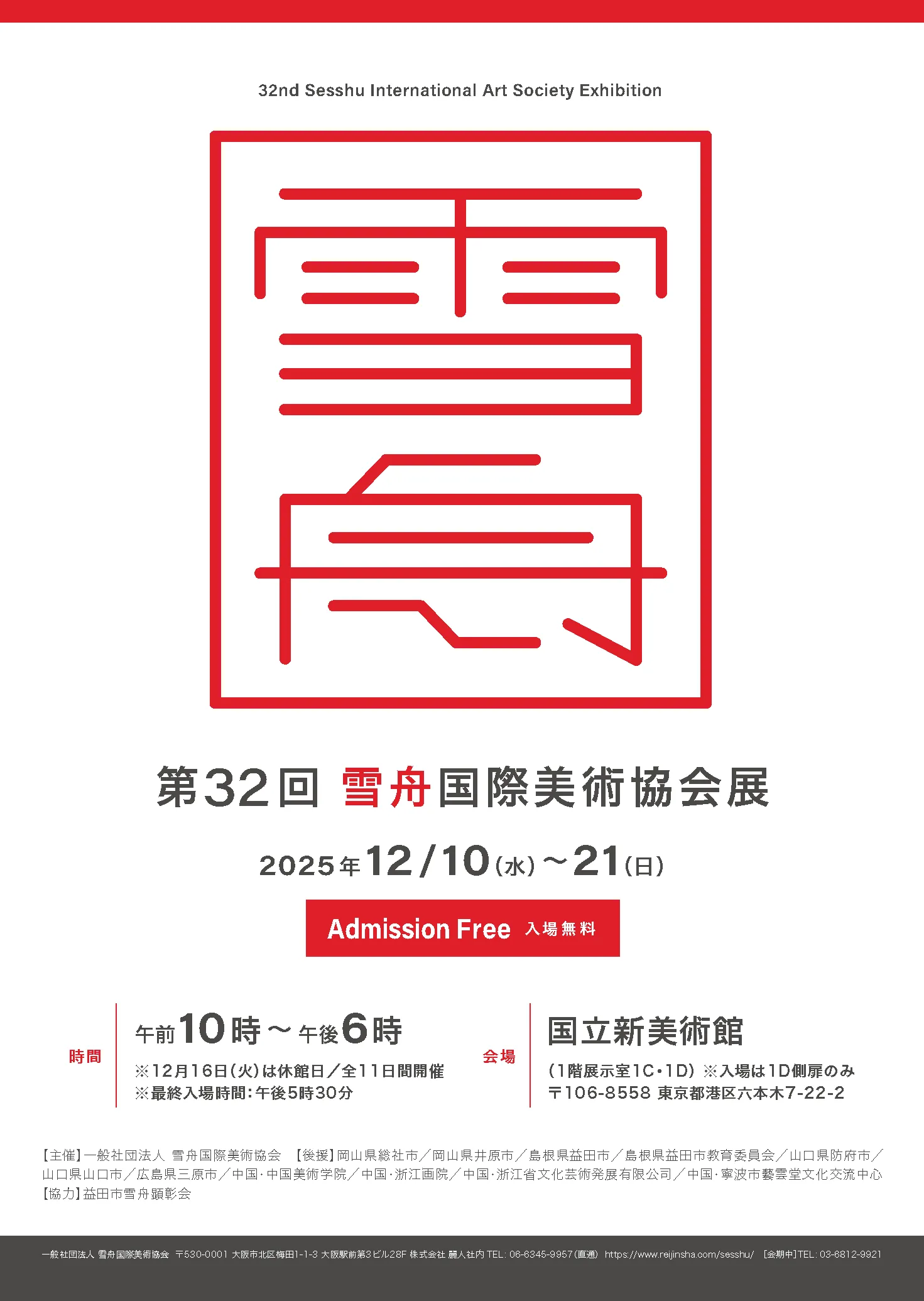2025 年12 月10 日から21 日、六本木の国立新美術館にて「第32 回 雪舟国際美術協会展」を開催しました。